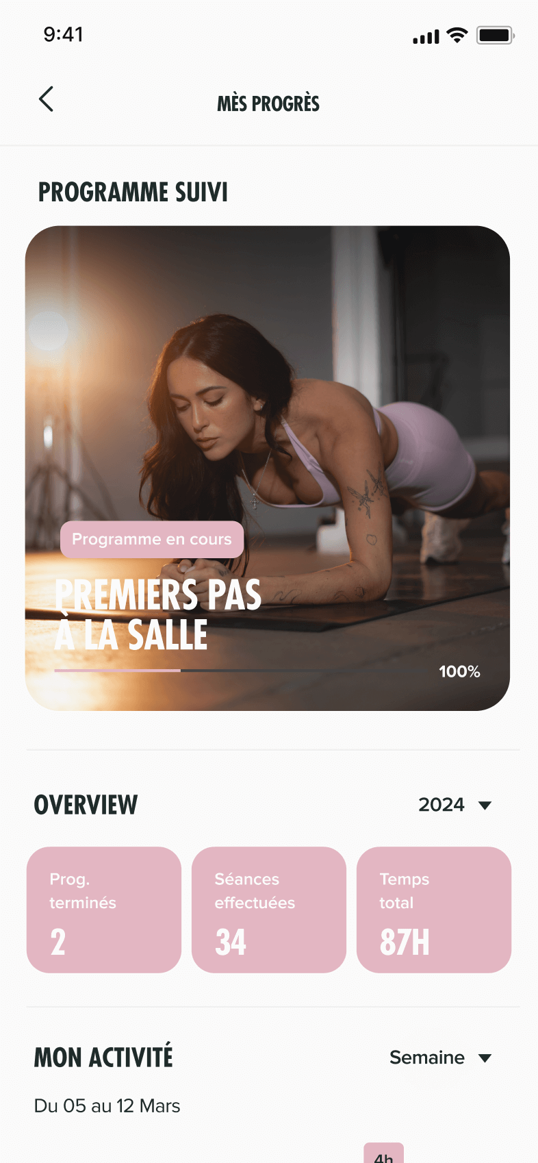 “Enfin une application adaptée à la salle de sport! J’ai testé le programme Premier Pas à la salle et trop bien! Super pratique de voir les vidéos en temps réel, et de pouvoir tracker les poids pour s’en souvenir! L’application est super complète, avec la partie nutrition et bien être! Et super motivant la partie communauté où on peut partager du contenu! Bref, j’adore cette application, elle est déjà hyper bien pensée et abouti alors j’ai hâte de voir la suite!”